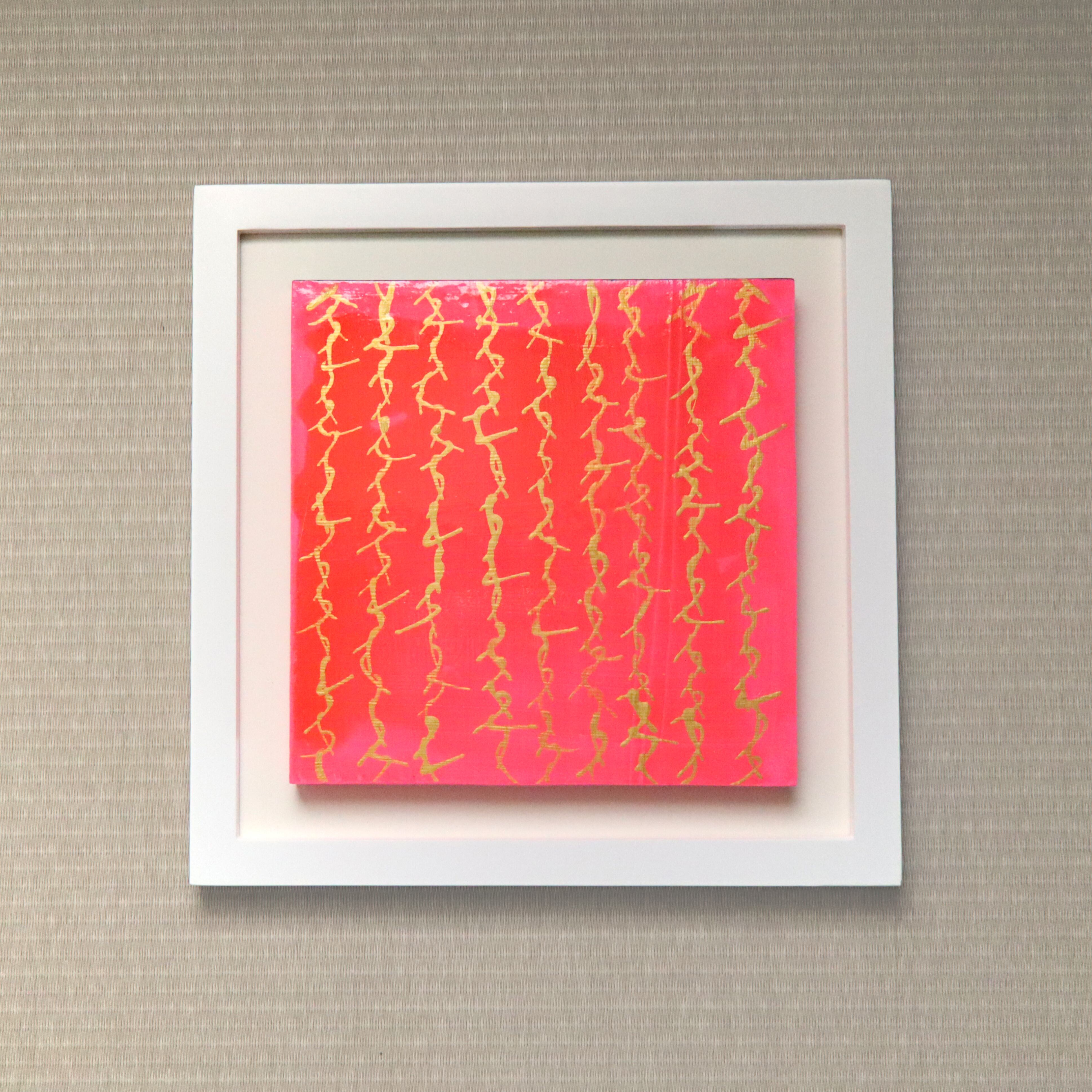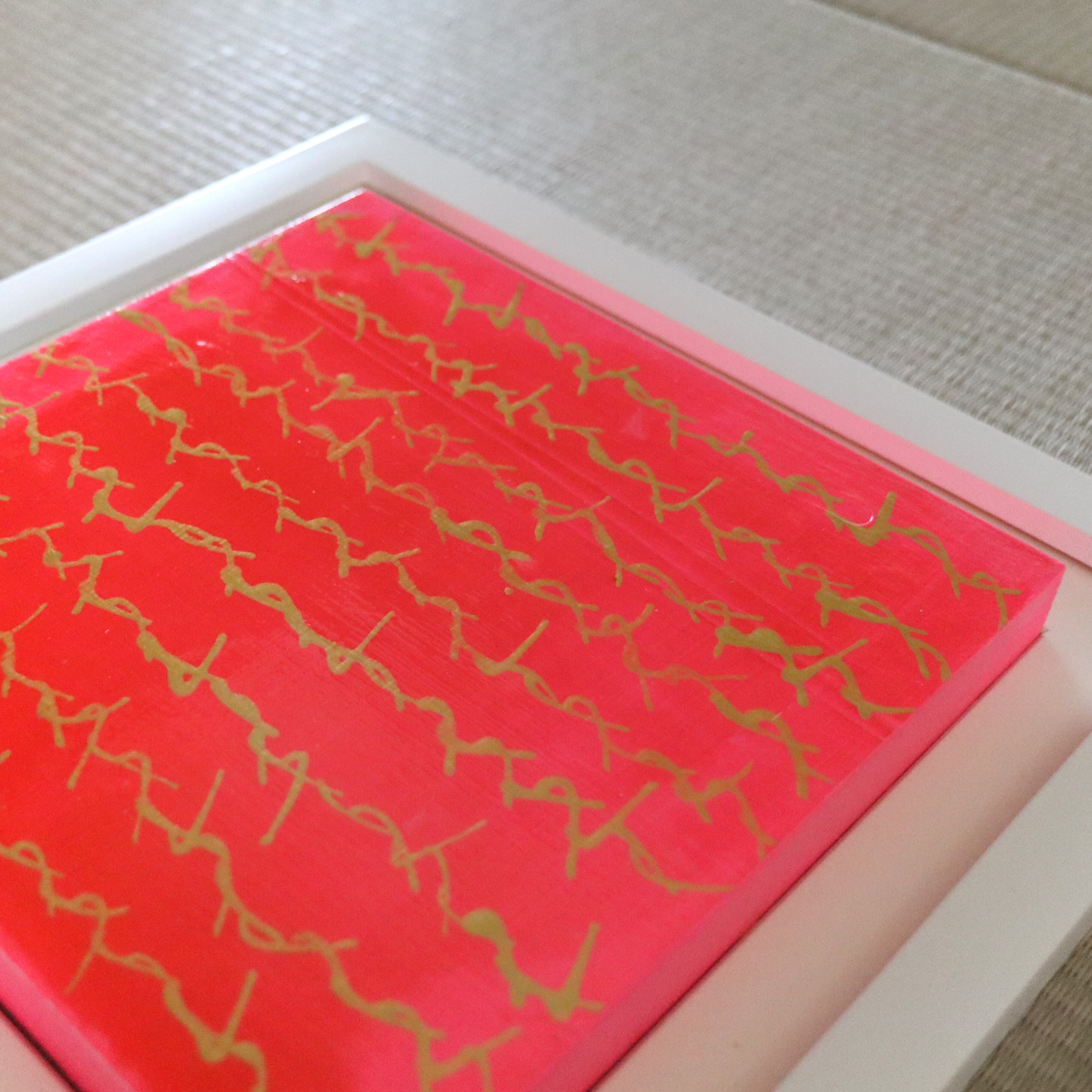 サイズはやや小さめでありながら色彩と素材のコントラストによって圧倒的な存在感を放つ。色彩と素材により祝福の想いを表現した作品。